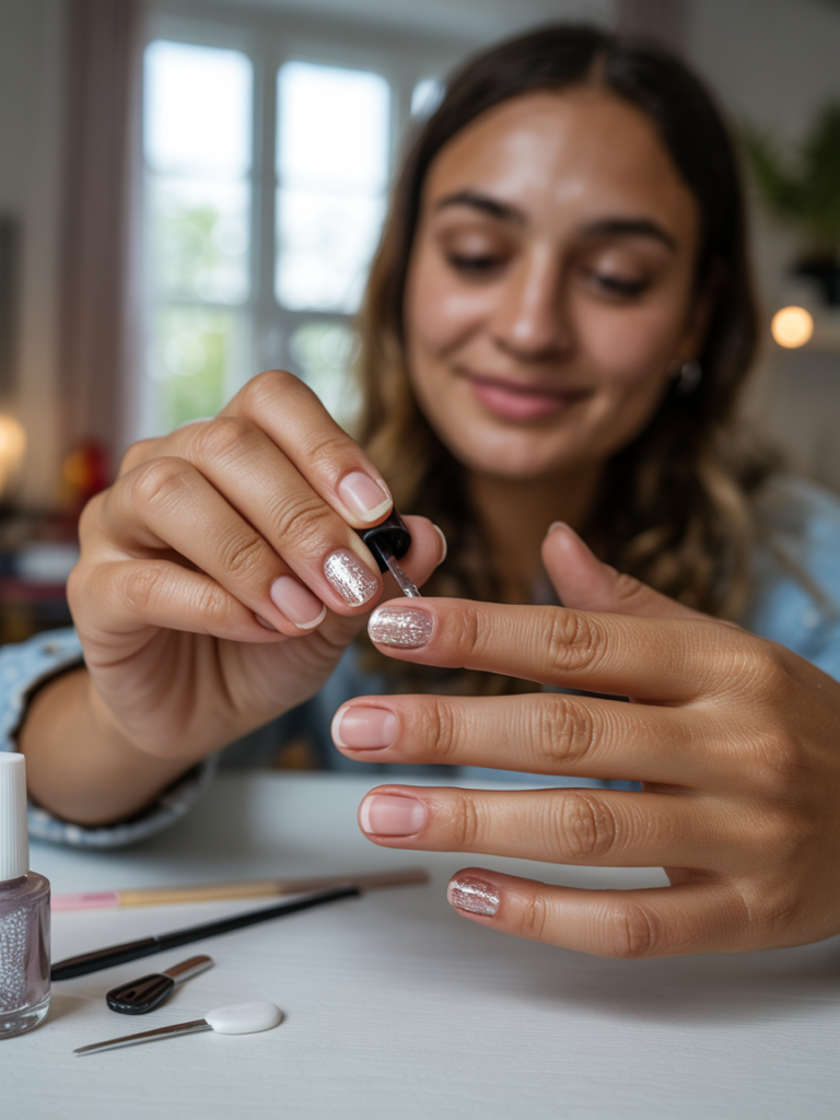 - Take a break of at least 1–2 days between removing glitter polish and applying a new manicure.