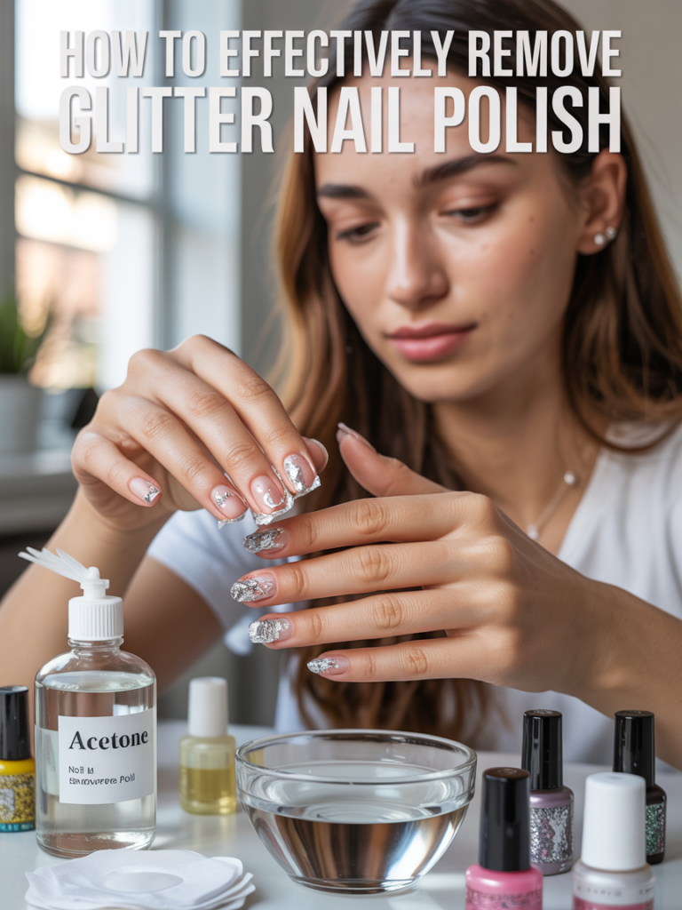 - Gel glitter polish requires a completely different approach — gel-specific acetone removal with longer soak times of 20–30 minutes or professional removal at a salon.